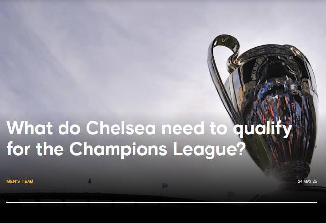 切尔西官方表示,目前英超联赛只有利物浦、阿森纳和热刺得到了欧冠资格。剩下的3个席位将由曼城、纽卡、切尔西、阿斯顿维拉和诺丁汉森林争夺。