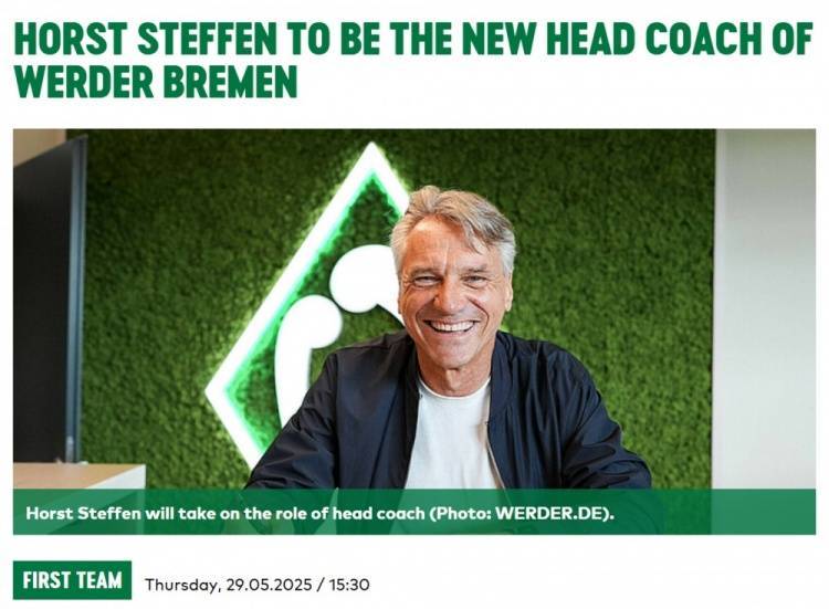 直播吧5月29日讯 不莱梅官宣,56岁的德国教练霍斯特-斯特芬出任球队新帅,据德转显示,双方签订的合同至2028年6月。